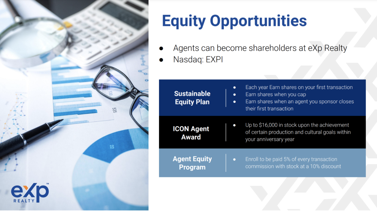 When an agent first qualifies to become an eXp ICON agent and reached their production requirements, they receive an $8,000 stock award from eXp on the 15th of the month that eXp Realty officially recognizes you as an ICON agent. Then, when you complete your first cultural requirement and complete one of the 4 required tasks of participating as a coach, trainer, or mentor in eXp University or eXpand Mentorship, you will be awarded a $4,000 stock award, totaling $12,000 in EXPI stock.